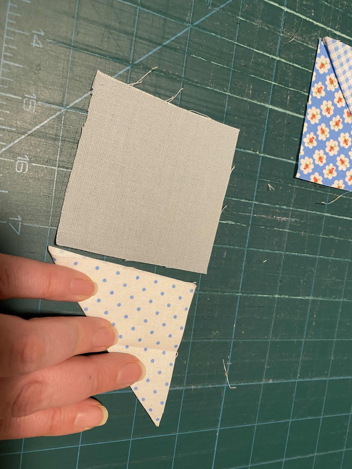The block turned out a little smaller than I expected. I forgot to add the extra seam allowance when sewing together the 3“ blocks. Maybe if I had measured them each at 3.25 then it would have been better.