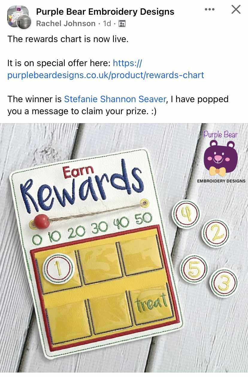 I was the lucky winner of an embroidery file this month. I was excited to win this file because I think that it will be useful in the classroom. I earned the prize from „Purple Bear Embroidery Designs“. If you are into machine embroidery, I highly recommend that you follow her- lots of unique adorable designs.