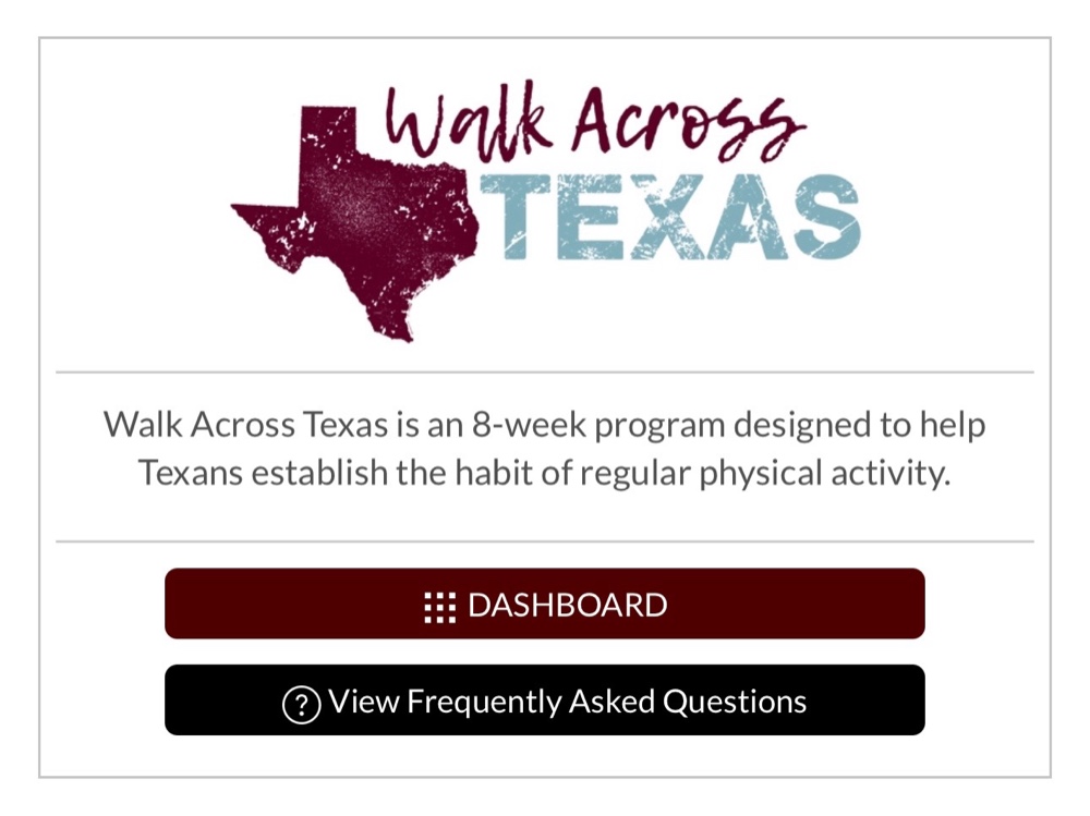 WAT Challenge on February 04, 2026 Get link Facebook X Pinterest Email Other Apps Competing in the „Walk Across Texas Challenge „ WATCan log miles here: https://howdyhealth.org/programs/loginStart logging your steps today. I have attached the activity minutes equivalents tracker.https://howdyhealth.org/programs/helpdesk/faqs/wat-faqs Comments